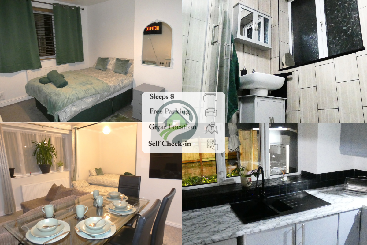 🏡Welcome to your bright and spacious 4-bedroom with 7 beds, 1.5 bathroom maisonette in Salford, just 2 miles (15 min ride) to Manchester City Centre and only a 7 min walk to Salford Quays.